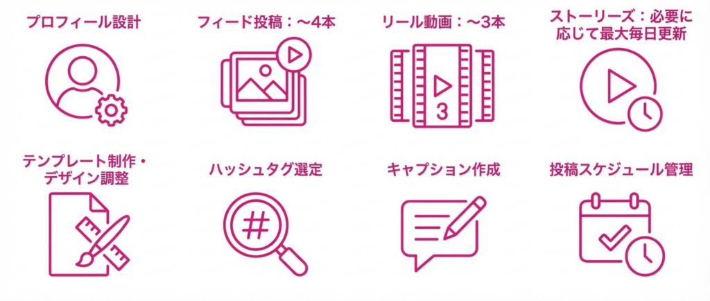 撮影・文章作成・投稿・編集・ストーリーズ更新などの運用作業はすべて担当者が行います。
